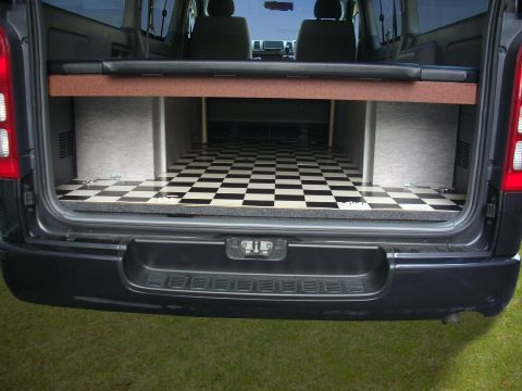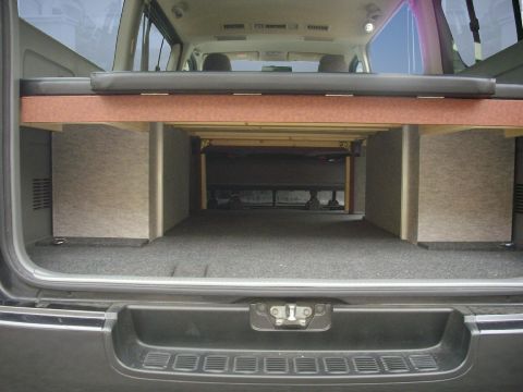 車中泊の時だけではなく普段使いのときも、貨物車であるハイエースを、より乗用車的に使えるように独立したトランクを設けました。