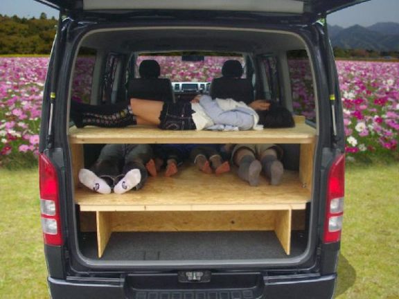 ハイエース本体には一切の加工をせずに取り付けますので、基本的にはそのまま車検を受けられますが、ディーラーで車検を受ける際は、ベッドキットを降ろすことを求められることがあるようです。
